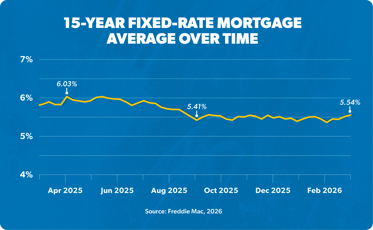 The Fed currently has the federal funds target rate (the interest rate banks charge each other for overnight loans) set at 3.5–3.75%.2 Their latest projections put the rate at around 3.4% by the end of 2026.3 But keep in mind: 3.4% doesn’t mean mortgage rates will go that low. Mortgage rates are usually 2–3% above the federal funds rate.